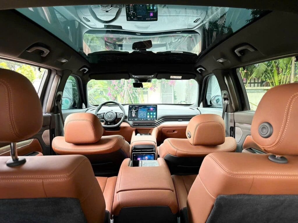 Không gian rộng rãi: VF9 cung cấp không gian ngồi rộng rãi cho cả 7 hành khách, với ghế ngồi bọc da cao cấp, tạo cảm giác thoải mái trong những chuyến đi dài.